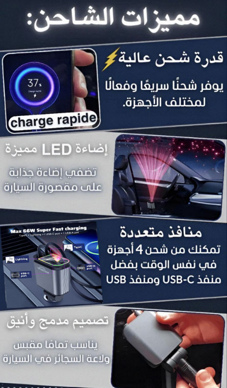 🌟 حوّل سيارتك إلى فضاء من الفخامة مع هذا الشاحن السريع المتطور، الذي يدمج بين التقنية الحديثة، وإضاءة نجوم الخلّابة